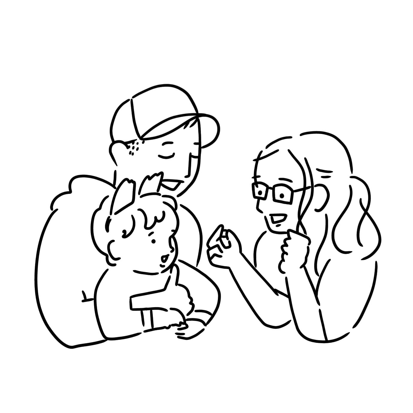 複数人用の黒線のみのシンプルな似顔絵です。